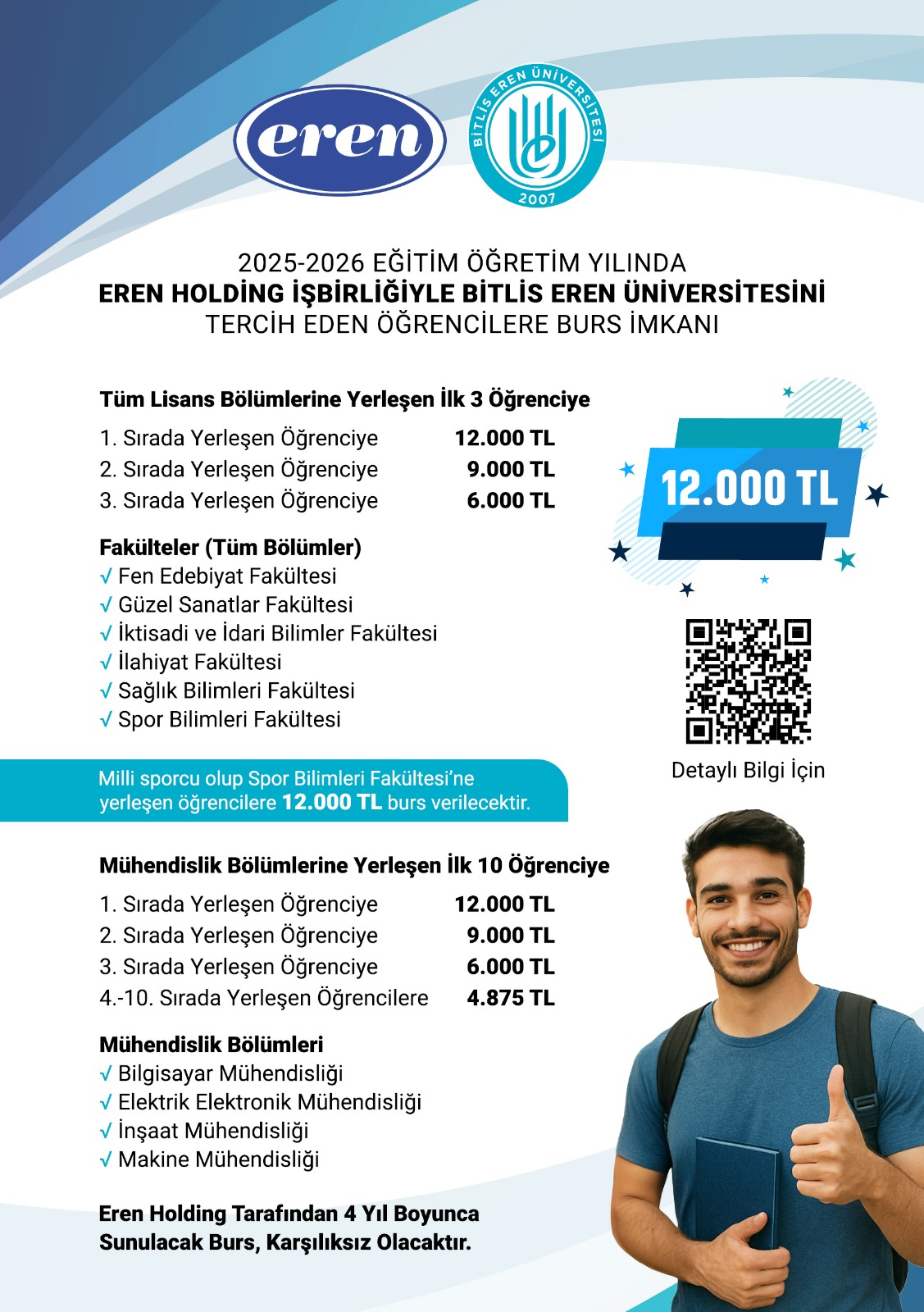 2007 yılında kurulan Bitlis Eren Üniversitesi; genç, dinamik, evrensel değerler ışığında ve tarihinden devraldığı misyon doğrultusunda bilim, teknoloji, kültür ve sanat birikimine katkıda bulunmaya çalışan, ülkenin geleceğini güvenle emanet edebileceğimiz nitelikli, üretken, dürüst ve çalışkan bireyler yetiştirmeyi amaçlayan lisans, yüksek lisans ve doktora programları yürüten bir üniversitedir.